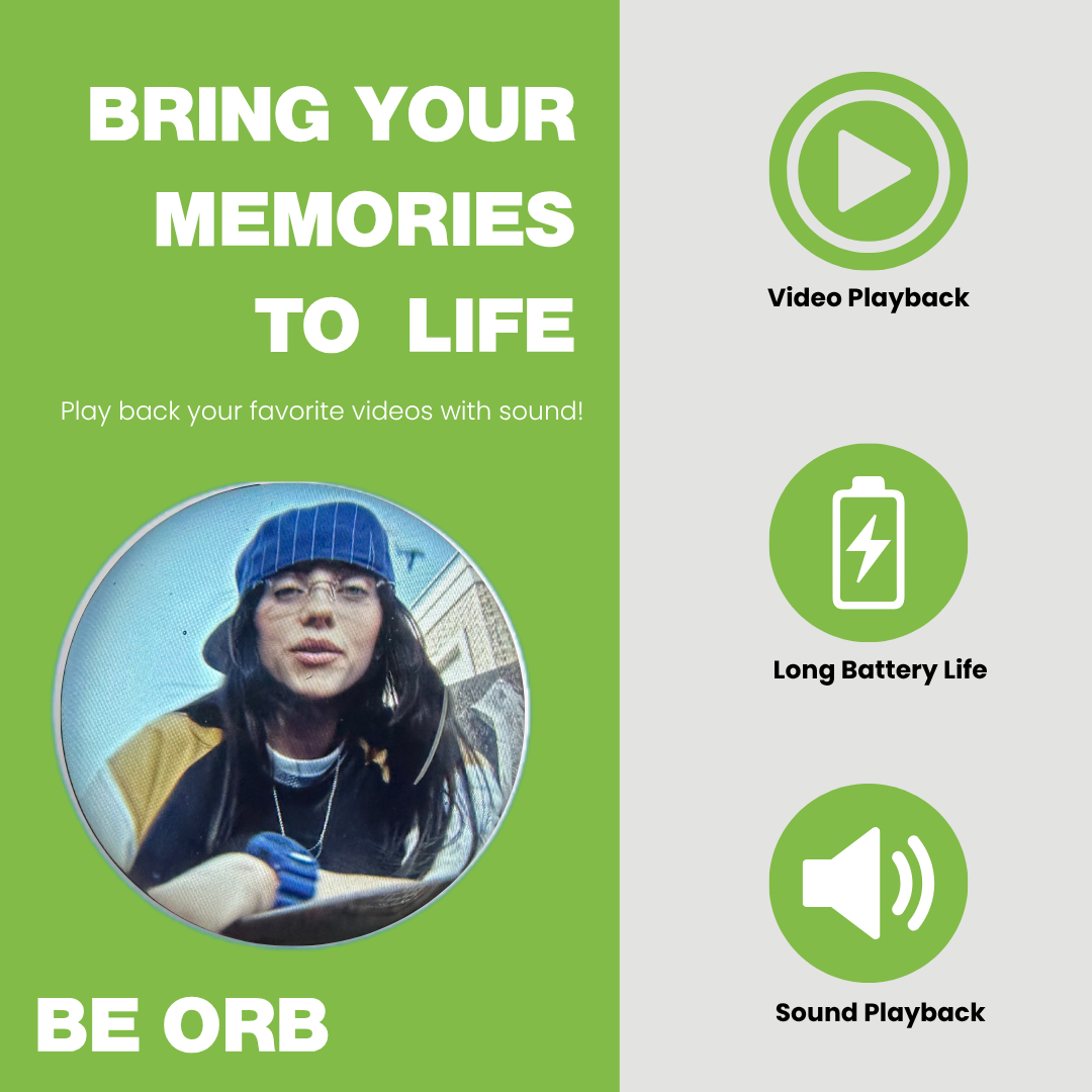 Yes, the Be Orb™ orb plays both video and audio, so you can hear voices, music, or ambient sounds from your memories — making each playback even more emotional and immersive.
